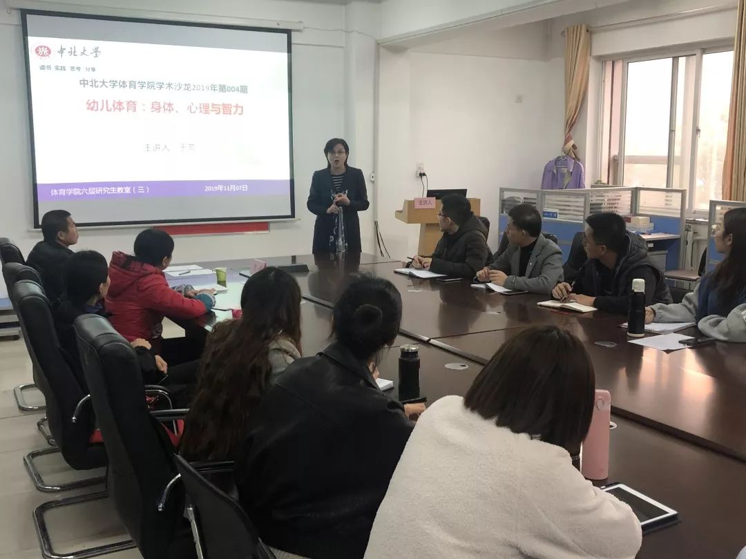 本期学术沙龙主题为“幼儿体育、身体、心理与智力”。沙龙持续了一个半小时,于老师首先将她在“第十一届全国体育科学大会”上的收获进行了分享,提出“戒毒”以及“幼儿体育”两个当前的研究热点。随后以讨论的形式引出幼儿缺乏运动所带来的问题,并对幼儿参加运动的益处、幼儿身心状况以及目前研究状况进行了阐述分析。