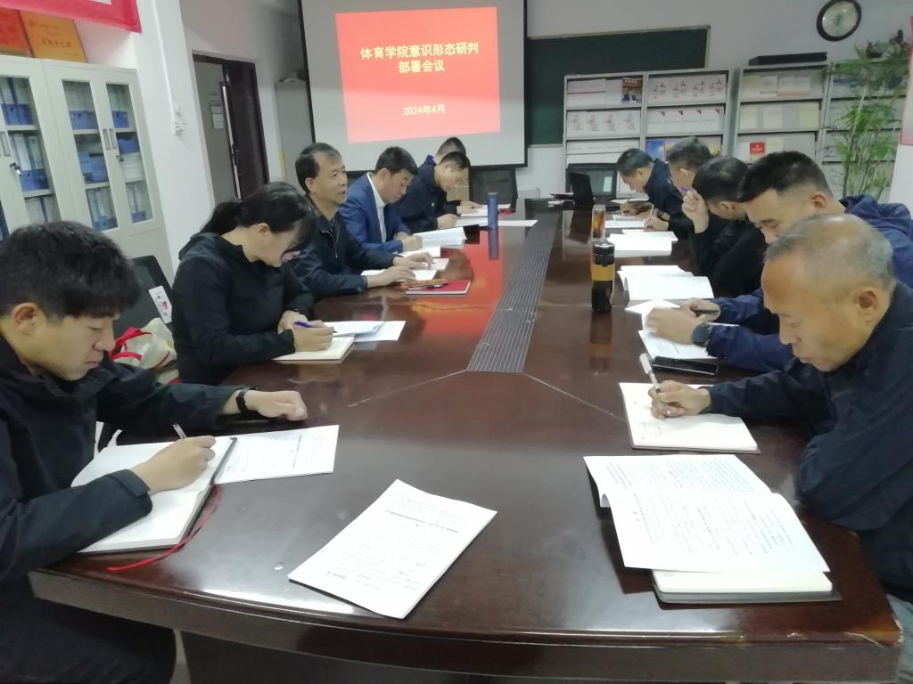 在院楼3层会议室召开意识形态研判部署会议。会议由学院党委书记曹电康主持,学院领导班子成员、党委委员、支部书记、科长、辅导员(班主任)参加会议。