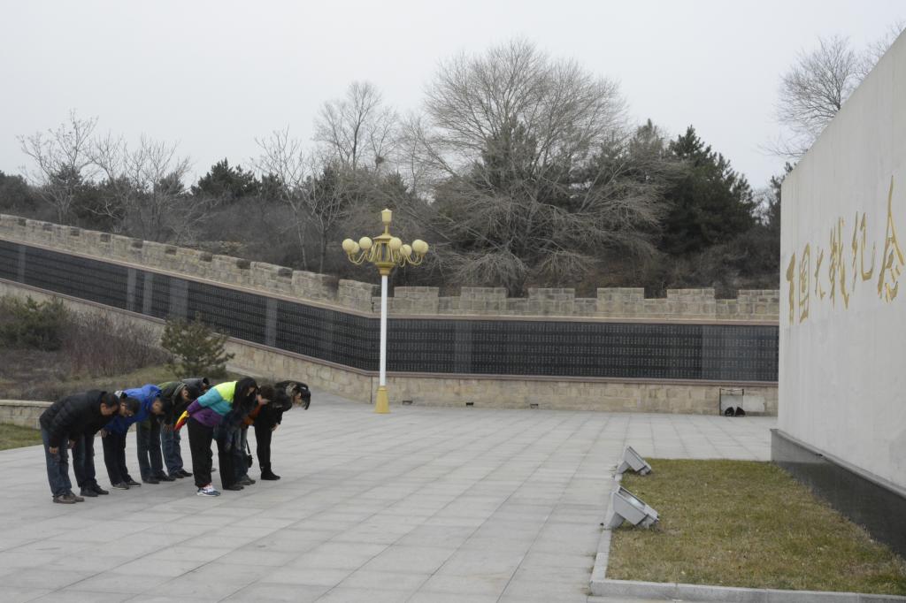 随后我们在烈士纪念碑前三鞠躬,来缅怀我们在百团大战中壮烈牺牲的先烈。