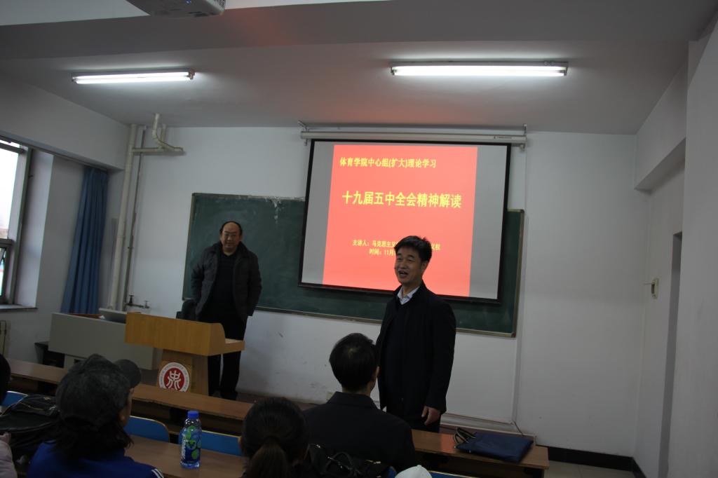 党委书记王政宇主持,并邀请了马克思主义学院党委书记段义权做十九届五中全会精神深刻解读,全体党委委员及各支部书记、全体教师参加了专题会议。