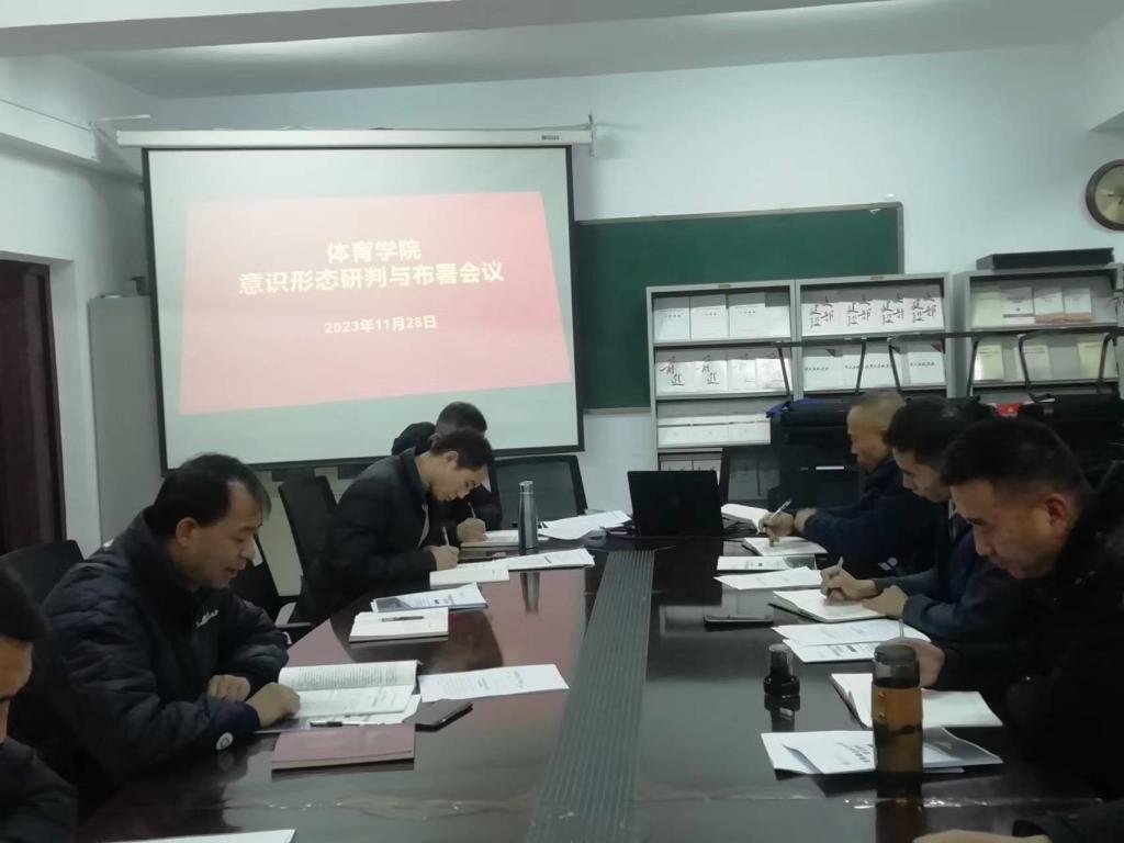2023年11月28日上午,在306党员之家,学院党委召开了2023年下半年意识形态研判与部署会议。学院党委书记曹电康主持会议,领导班子成员、党委委员、党支部书记参加会议。