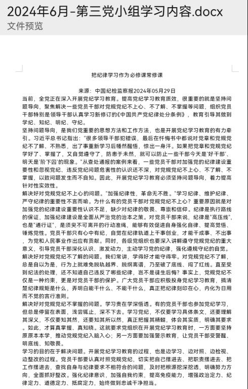 研究生党支部第三党小组于6月21日在腾讯会议平台线上针对《把纪律学习作为必修课常修课》进行学习。