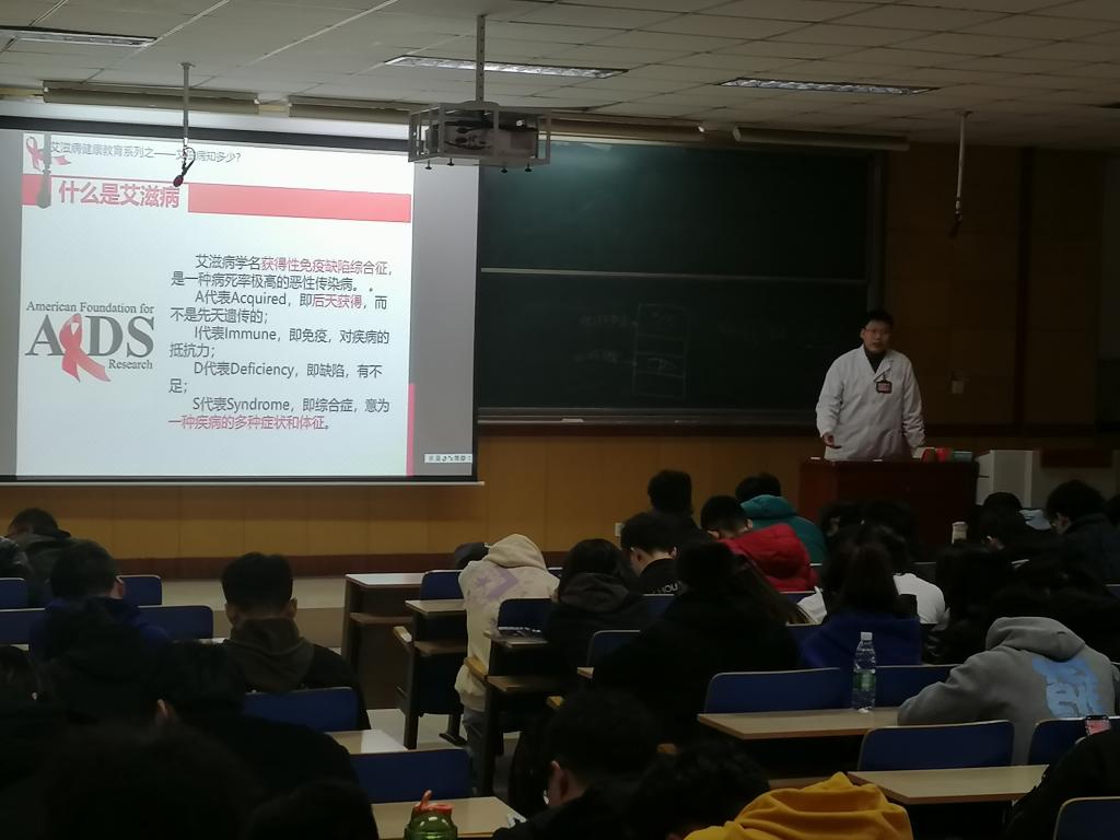 医院公共卫生科,校园传染病管理专职医师赵海滨主讲,全体大一、大二学生及学生干部代表参加。