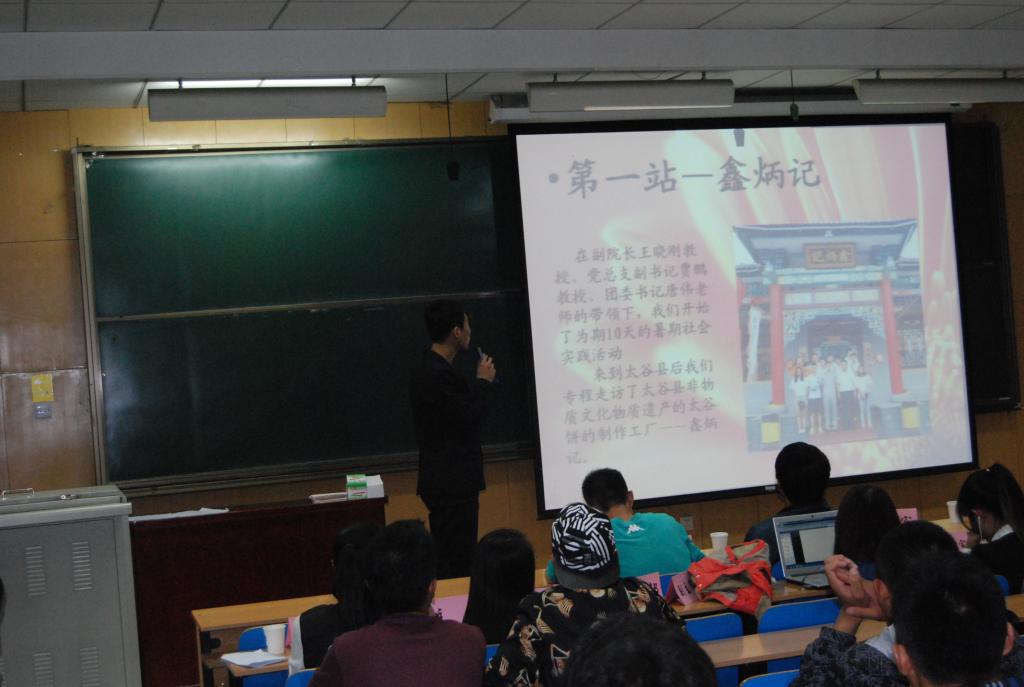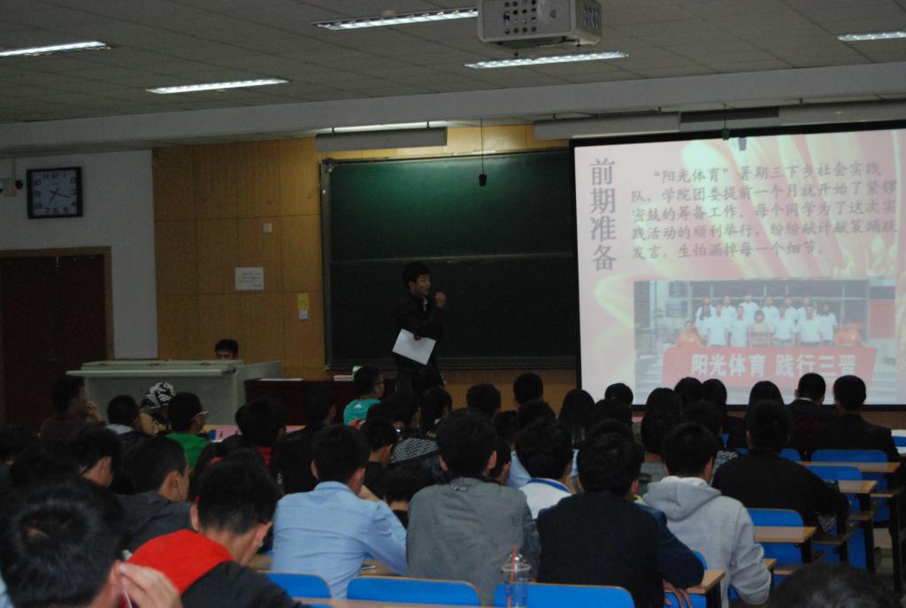本次大会中“阳光体育”暑期三下乡社会实践队的队员们用PPT展示了他们十天社会实践的努力与收获,赢得了在座同学们的阵阵掌声。