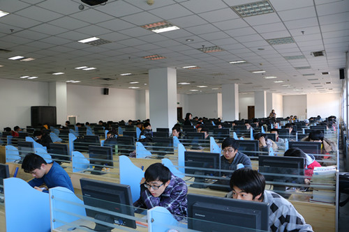 2014级新生入学教育考试系统在图书馆电子阅览室成功通过测试并正式投入使用。第一场考试在仪器与电子学院14060143、14060343两个班共同进行。