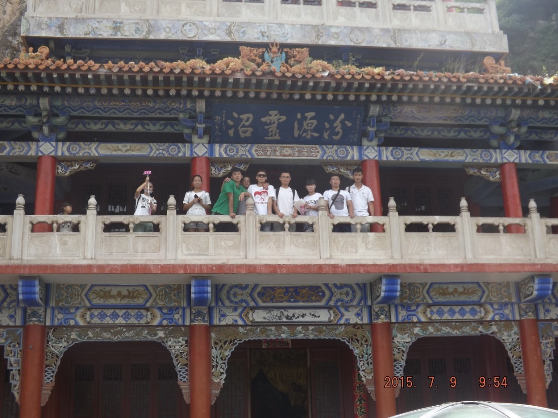 7月9日,按照计划实践团队前往汾河源头进行实地考察。汾河是三晋的母亲河,山西最大的河流,也是黄河的第二大支流。发源于宁武县东寨镇管涔山脉的楼山下的水母洞。源头有一水塘,塘上石壁刻有“汾源灵沼”四字,石塘壁中雕有龙头,龙口中喷出一股股清泉,终年流淌不绝。自古以来就有三晋第一胜景之美誉。