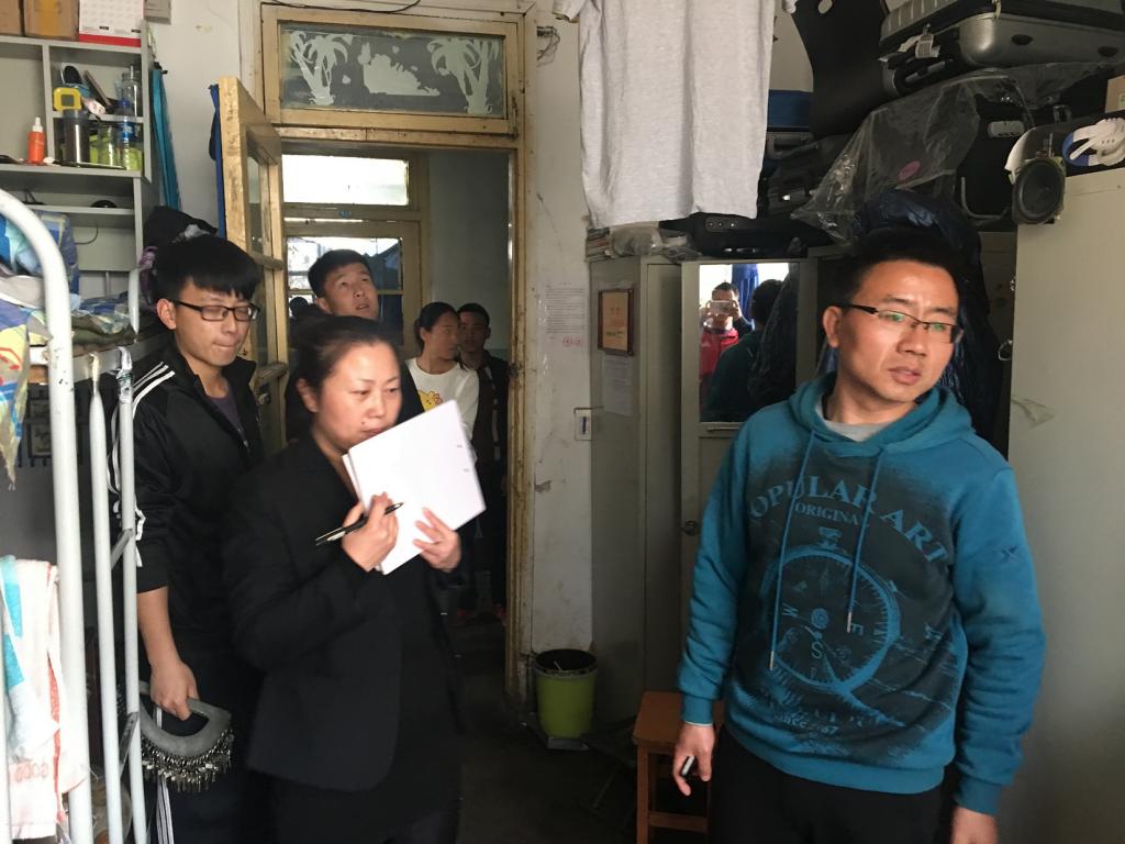 的安排和部署,由我院学生科科长李士荣老师、辅导员王华慧老师组织我院学生会主席团,协同学校后勤部门对我院学生宿舍进行了一次全面细致的安全卫生大检查。