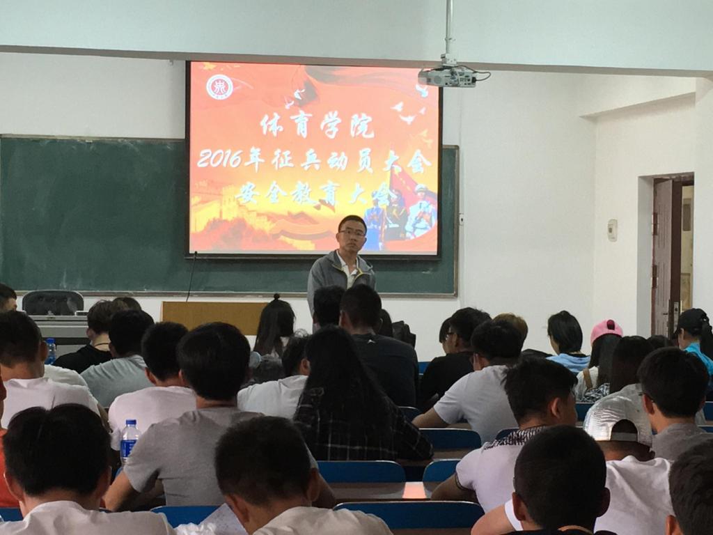 首先李老师详细介绍了2016年征兵的大体时间安排和国家对于大学生兵的各项优惠政策,并积极动员大家踊跃报名参加。然后提醒大家警惕所谓的“校园贷”等网络借贷平台。接着强调同学们一定要注意自身安全,严禁打架斗殴。凡是纠集人员打群架或动用器械打架的同学,一经发现,一律开除。同时还提醒大家要注意宿舍安全,防火防盗,出门前检查门窗,顺手锁门,严禁在宿舍抽烟,一旦发现从严处理。最后严禁同学们利用周末去汾河戏水、烧烤、酗酒,注意自身安全。