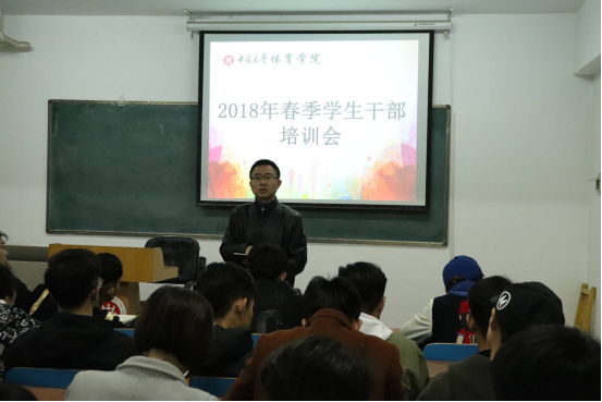 最后,李老师要求每位学生干部、党员要互相学习、互相帮助、互相提高、互相支持,更好的发展自己,提升自己,为体院的发展奉献自己的一份力量。