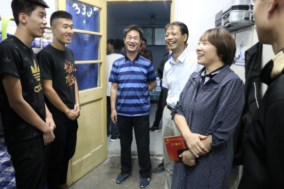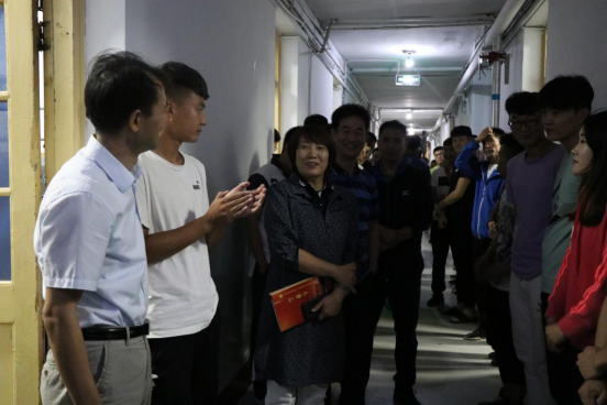 王瑞芬书记每到一个宿舍,都要详细询问每个同学的个人情况,尤其关注新生对太原的气候以及饮食是否适应,并细心地叮嘱大家要加强安全意识。在楼道里,王书记对全体新生提出几点希望,首先树立独立意识,学会在大学自己面对问题,处理问题;其次处理好和同学的关系,互帮互助,一起进步;再次学会学习,尤其要学好专业课,向获得中北奖章,校长奖状的集体和个人看齐,在四年的大学生活中不断进步,完善自我。
