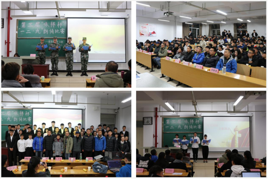 文化育人工程给予了肯定,解读了“一二·九”这一爱国主题教育日的意义,鼓励参赛选手们,为大家带来一场精彩的朗诵比赛。