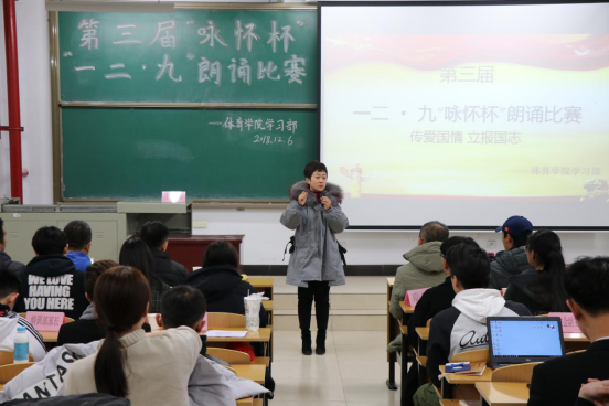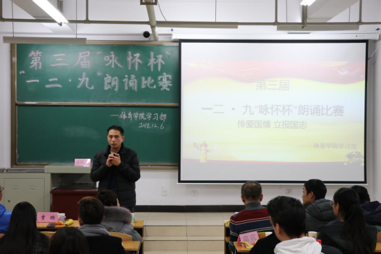 为进一步丰富校园文化生活,进一步加强书香体院的建设。体育学院于2018年12月6日晚上7点举办了第三届“咏怀杯”一二·九朗诵比赛。出席本次比赛的嘉宾有校团委副书记刘玉巍,偷拍av