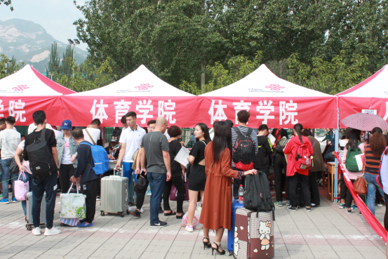 校内迎新工作也有条不紊地开展,报到新生与指引报到的志愿者们来来往往,热闹非凡。报道的过程中,工作人员在为家长提供休息区的同时也为他们解答了疑惑与问题。虽然天气很炎热,但工作人员的热情不减,他们各司其职,积极参与到迎新工作中,使得体育学院迎新工作开展的井井有条。