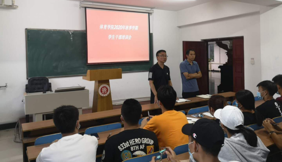 于院楼一层会议室召开2020年秋季学期学生干部培训会议。会议由院副书记贾鹏主讲,学生科科长李士荣、团委书记王宇鹏、辅导员李佳怿以及全体学生干部参会。