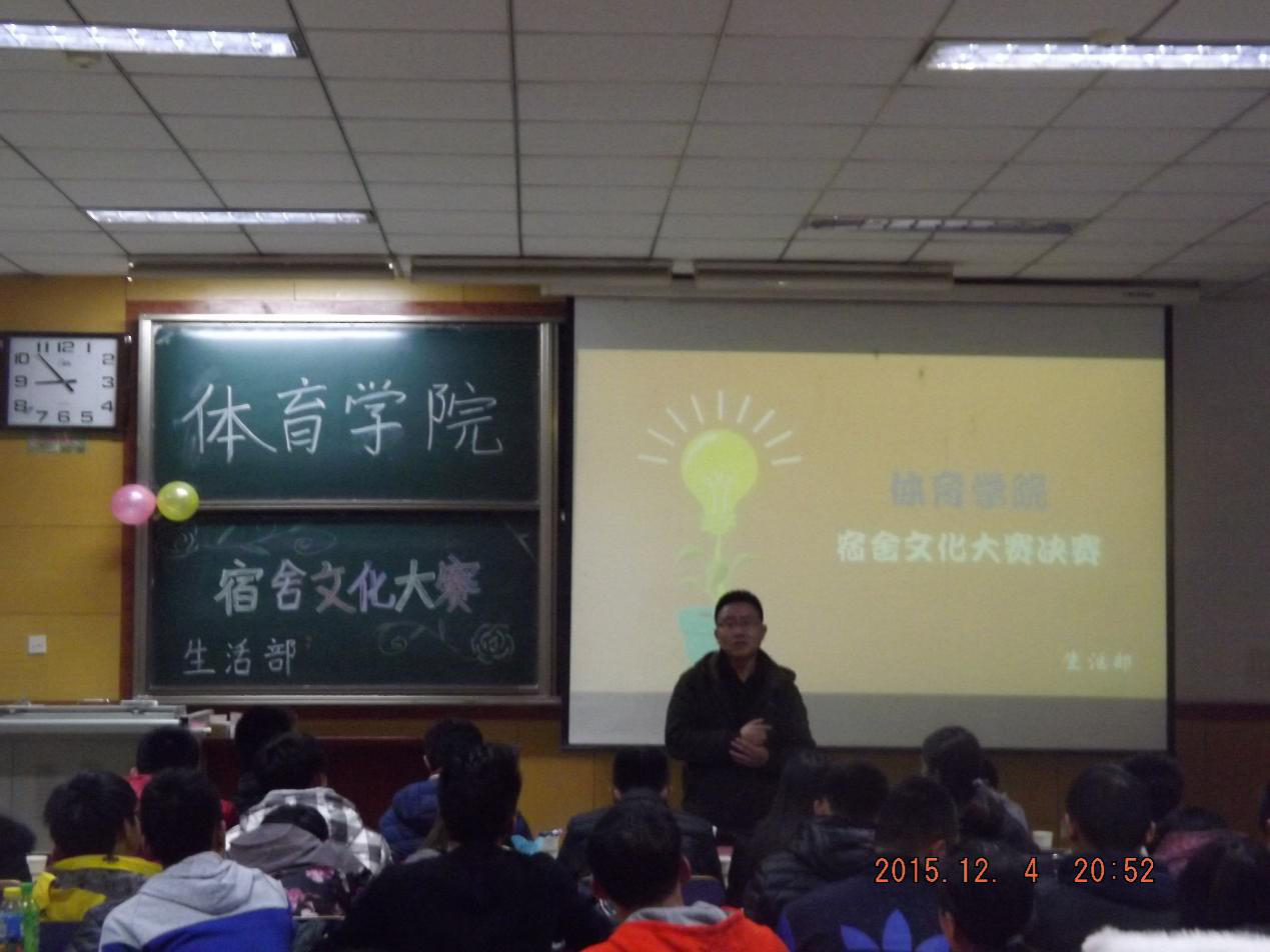 2015年12月4日晚七点,我院在九号楼09101教室举办了“偷拍av 宿舍文化大赛”。出席本次活动的人员包括学院学生科科长李士荣老师,团委书记唐伟老师,辅导员王华慧老师,及学生会主席团全体成员和15级全体学生。