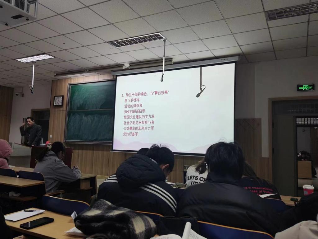 培训中,贾书记强调,作为青年学生骨干,要加强理论知识学习,提升专业水平、坚定理想信念、勇于承担时代重担,做一名中国特色社会主义事业的合格建设者和可靠的接班人。此外,学生干部要发挥榜样引领作用,发挥校园文化建设主力军的作用,在学校、学院各项事务和活动上要积极参与,主动担当。
