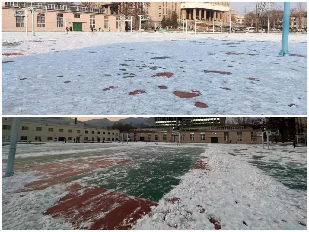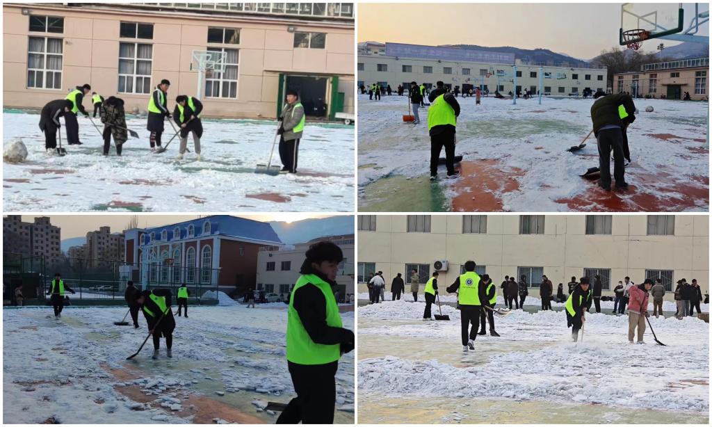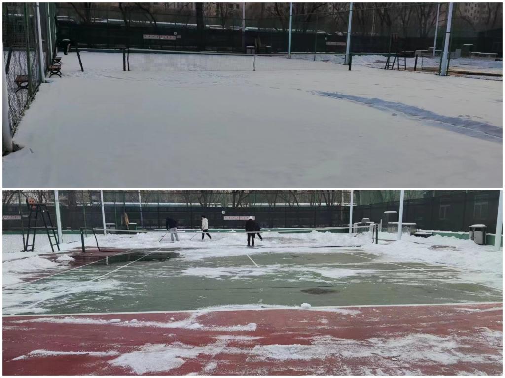 在王梓瑞、邱旭两位部长的带领下,各部门积极配合,分工明确,责任到人。每名同学不畏严寒,不辞辛苦,挥舞着工具,认真清理每一个角落的积雪。经过大家的共同努力,篮球场和网球场内的积雪基本被清除干净,为教学和学生户外锻炼提供了便利条件。