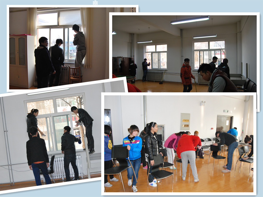 在离退处刘彬处长和程芳老师等领导的协调帮助下,唐伟老师进行了详细的工作安排,同学们对台球室、书画室进行了细致认真的清扫并布置了多功能厅,在劳动的间隙,同学们还和老人们进行了亲切的交谈,使整个离退中心充满了欢声笑语,气氛十分融洽,老人们和离退处的领导老师都对同学们发扬“尊老,爱老,敬老,助老”的精神十分赞赏。