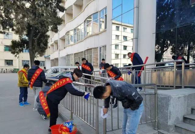在本次活动中两院志愿者先后对图书馆前的雕像、行知广场两侧、各自院楼、宿舍楼前的路灯进行清洗。志愿者们挽起袖子浸湿抹布,全然不顾冰冷刺骨的凉水,一颗颗火热的内心勉励他们将活动进行到底。活动结束后我院志愿者与艺术学院志愿者们一起分享了这次志愿活动的感悟与收获并于主楼前合影留念。