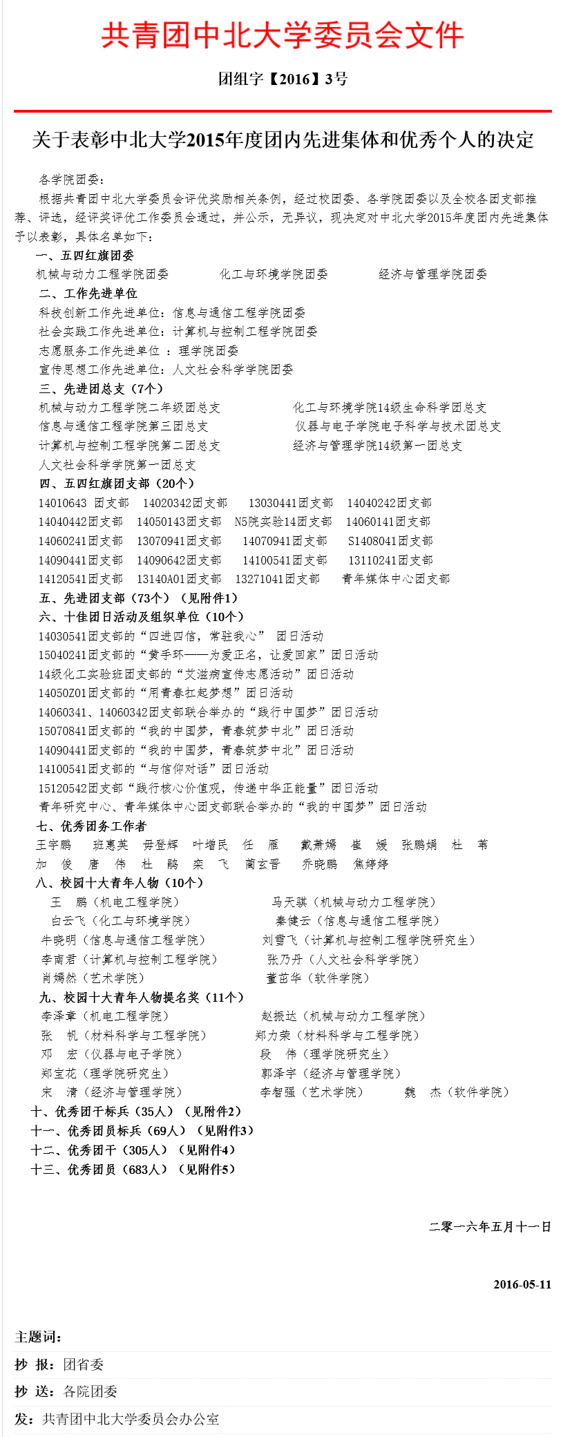 关于表彰偷拍av 2015年度团内先进集体和优秀个人的决定