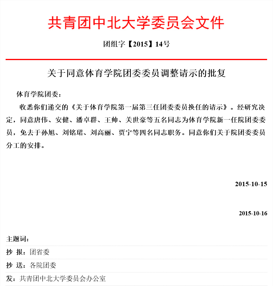 关于同意偷拍av 团委委员调整请示的批复