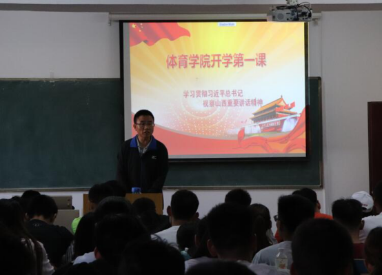 学生科辅导员李佳怿主讲,15、16级社会体育专业学生参加了本次活动。李老师表示,习近平总书记亲临山西视察并发表重要讲话,在山西发展史上具有重要里程碑意义,体现了党的领袖对山西人民的深厚感情和山西人民对领袖的衷心爱戴,鼓舞了全省人民的奋进信心。作为高校的一名学生,要深入学习习近平总书记重要讲话精神,全面、准确、深入把握习近平总书记重要讲话的精神实质,坚定理想、学以致用,把讲话精神落实到生活、学习中去。