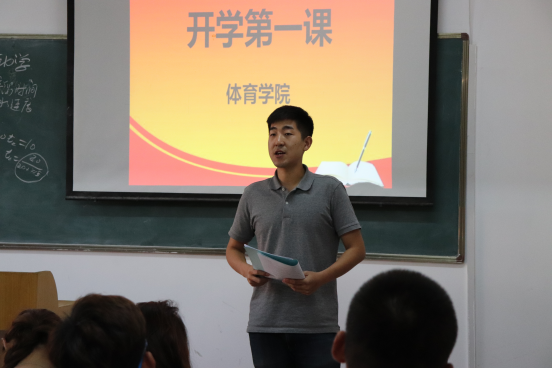 团委书记唐伟主讲,15级、16级运动训练专业学生参加了本次活动。唐老师与大家分享和深入探讨了习近平总书记的重要讲话精神,教导大家要勤学、修德、明辨、笃实,在实现中国梦的伟大实践中创造自己的精彩人生,争做社会的栋梁。