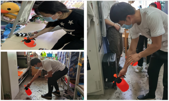 我院结合实际,为党员配备了额温枪、医用防护口罩、消毒液、喷壶等基本物资。17名返校毕业生党员以身作则,发挥模范带头作用,针对各自负责的宿舍与同学,每日开展各项防疫工作:不定时巡查学生公寓楼道是否有聚集人群,及时劝阻;督查宿舍卫生、通风情况,并为所负责宿舍消毒;核查《偷拍av