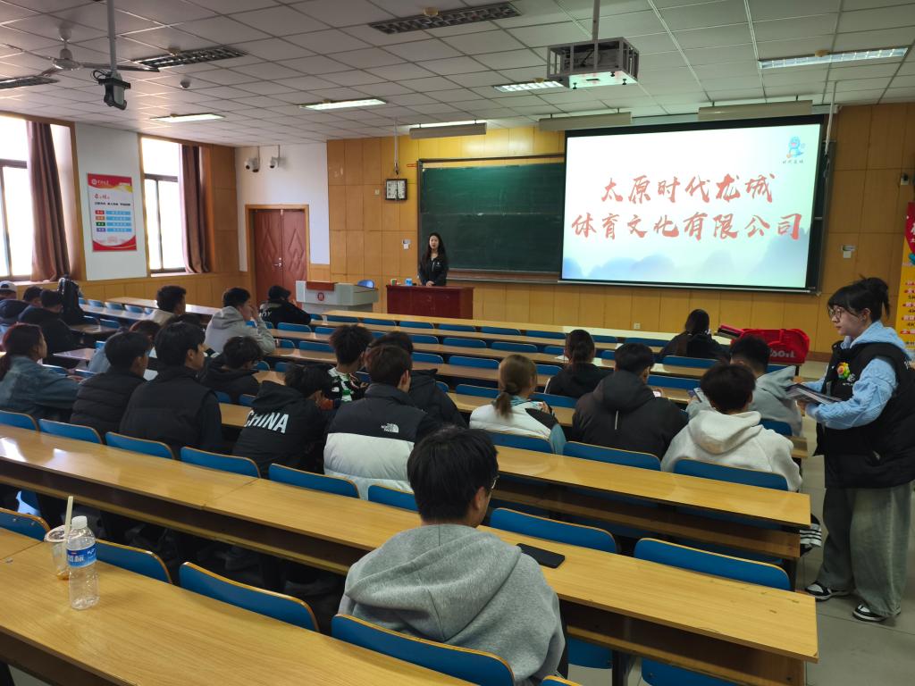 联合太原时代龙城体育文化有限公司举办专场招聘宣讲会。活动吸引了部分应届毕业生及低年级学生参与,围绕“毕业生招聘”与“低年级实践赋能”两大主题展开,为不同年级学生提供精准发展支持。