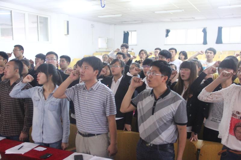 2013年6月23日上午10:00,体育与艺术学院2013届毕业生党员重温入党誓词仪式在08201隆重举行。院党总支副书记曹凤才老师、团委书记田维飞老师及全体毕业生党员参加了本次活动,活动仪式由团委书记田维飞老师主持。