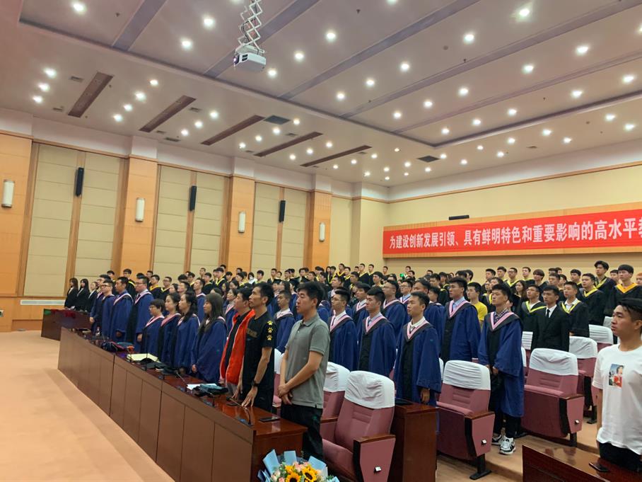 毕业典礼由院党委副书记贾鹏主持。在庄严的国歌声中缓缓拉开“帷幕”,所有的毕业生身着学位服,整装待发。既有成功的喜悦,也有无法诉说的情怀。