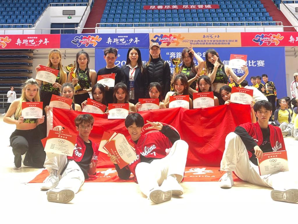 健美操队最终获得综合风格齐舞、规定爵士及啦啦操自选动作(街舞)三个项目的冠军。