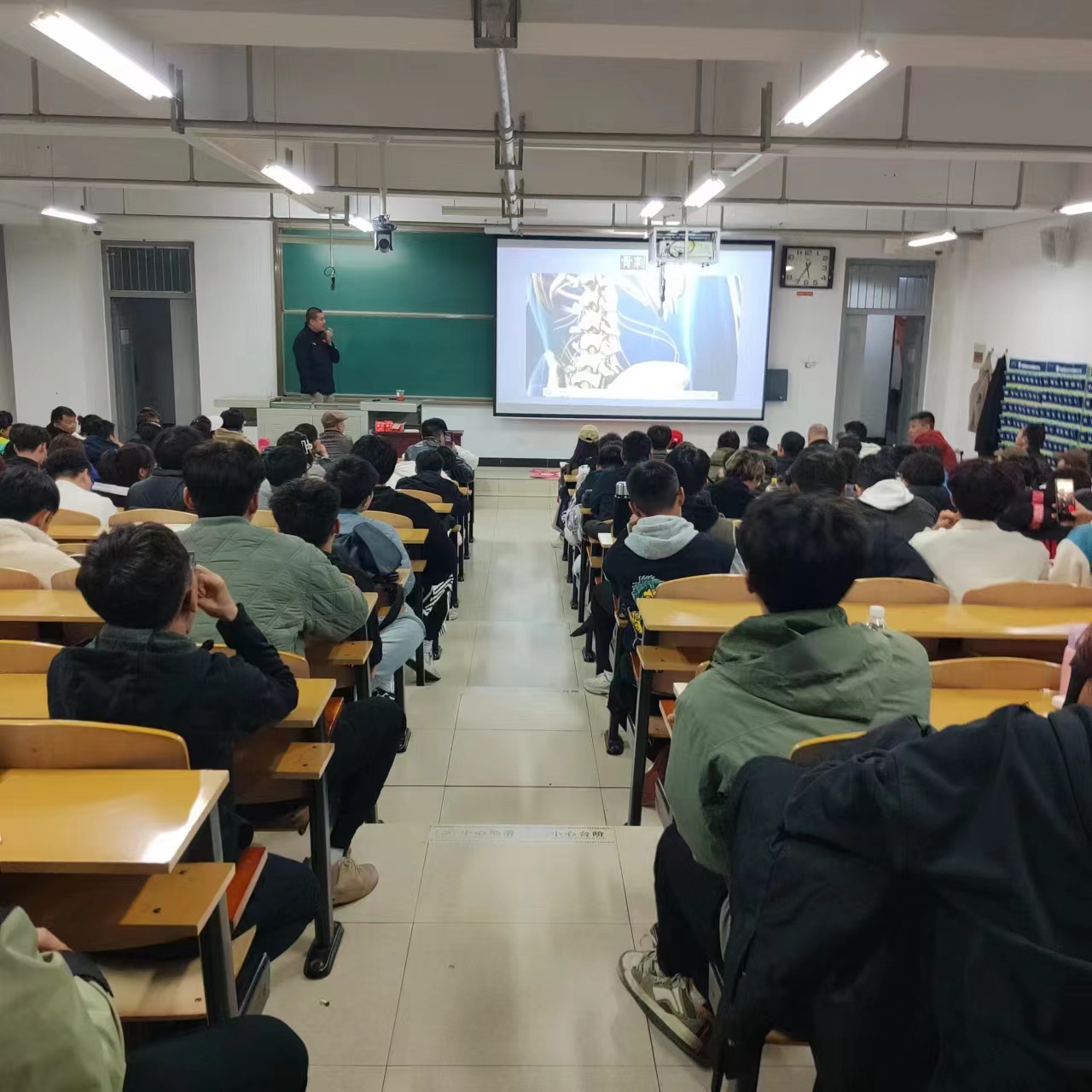200名师生讲解运动中损伤原理及损伤后的科学治疗方法。此行是应我院广大师生要求,第二次来做运动损伤治疗讲解。
