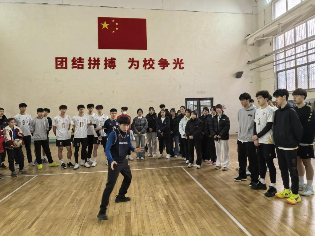 排球专项学生的训练进行现场指导交流。同时,张娴教练为100余名学生开展了主题为“小个子的排球梦”的讲座。她从“爱国是灵魂、团结是法宝、拼搏是特质”三个层面向同学们分享了自己的成长历程和国家队生涯,生动诠释了“女排精神”的内涵,激励了广大学生勇于追梦、拼搏进取。