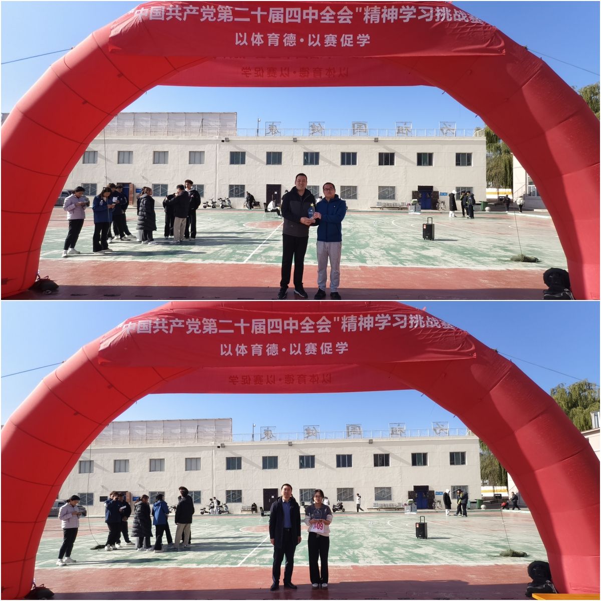 颁奖仪式上,学工部毋登辉副部长对活动的成功举办表示充分肯定,他指出,本次挑战赛打破了传统理论学习“坐而论道”的单一模式,通过“思政教育+运动”的创新形式,让学生在挥洒汗水中感悟精神内涵、在团队协作中凝聚奋进力量,是学校推动政治理论学习走深走实、落地见效的生动实践,并号召大家继续走出宿舍,走下网络,走向操场,强心健体,努力学习,为报效祖国储备深厚知识,练就强健身心。