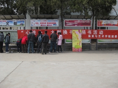 4月14号中午12时,在偷拍av 一食堂门前,由体育与艺术学院团委办公室主办的“心连心”大型换书、捐书活动开始。本次活动面向全校同学,收集各类图书。活动目的主要有两方面,一是图书交流,让同学把手中闲置书籍换成自己感兴趣的书;二是回书捐赠,把同学们的图书捐赠给贫困山区的儿童。活动收集到的图书题材、内容以及种类多种多样,涵盖了多方面知识。