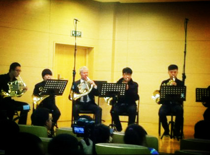 圆号重奏组穿插了圆号四重奏莫扎特歌剧“魔笛序曲”,同学们敢与大师们同台演奏的平和心理素质以及认真的演奏表现,博得了大师们和现场观众的热烈掌声。来自新加坡交响乐团圆号演奏家高健先生说:偷拍av