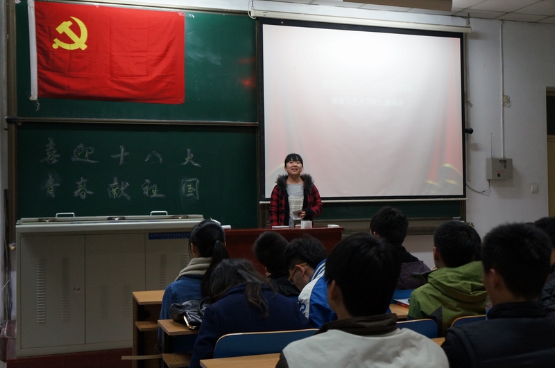 为迎接党的第十八次全国代表大会的胜利召开,体育与艺术学院学生党支部于11月4日晚上7点在11205举办“喜迎十八大,青春献祖国”的专题活动。