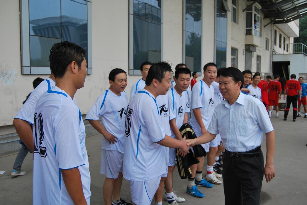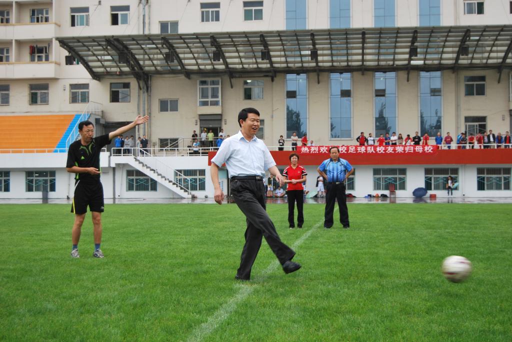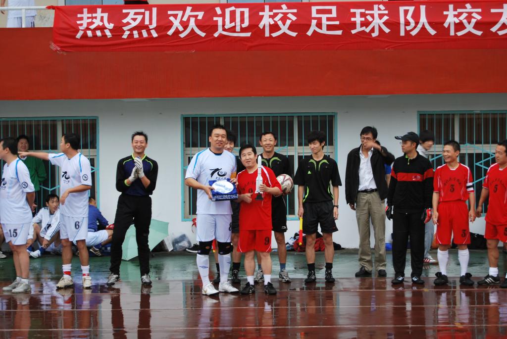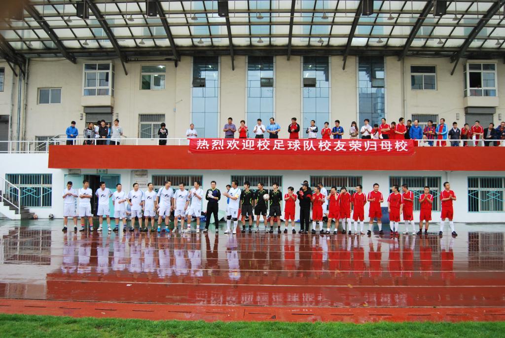 9月3日下午,由偷拍av "华北工学院"时期毕业的足球队员组成的“校友足球队”和学校教工足球队,在学校天然草坪足球场进行了友谊赛。沈兴全副校长看望了足球队校友,并为比赛开球。天空虽然下着雨,队员们依然热情高涨,雨中的比赛更加紧张激烈,精彩纷呈,最后校友队以6:4获胜。比赛不仅增进了校友与在校教工的友谊, 更增加了足球队校友对母校的眷恋,绿荫场上凝结着校友们对母校的一片深情。