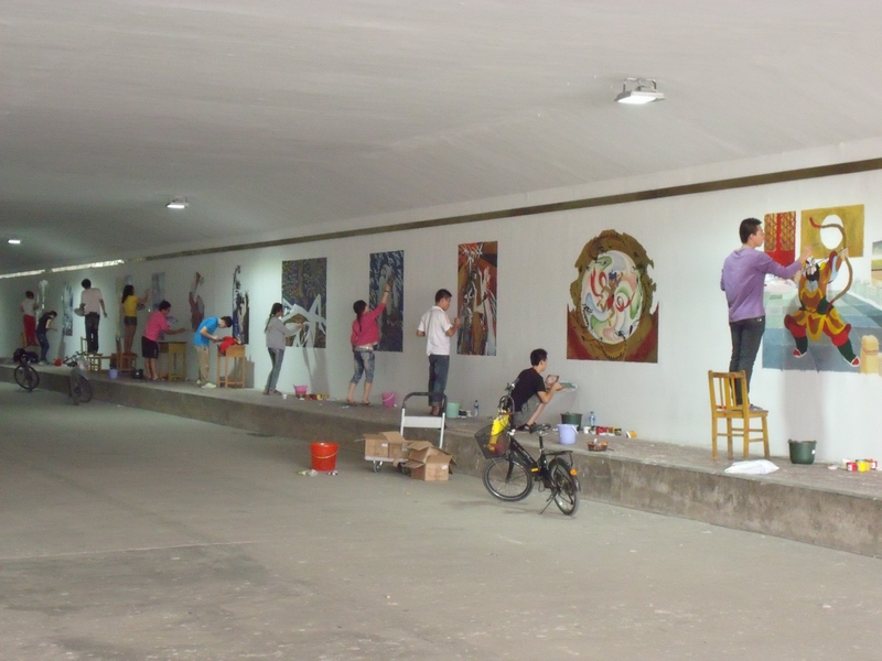 地下通道前来看望正在此处创作壁画的艺术系学生。此次留在学校为偷拍av