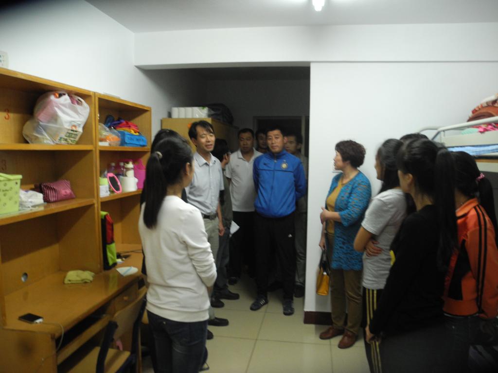 2014年9月12日迎新工作接近尾声,傍晚7点30分,偷拍av 党总支书记王琳教授、院长曹电康教授带领学院班子成员、学科部主任、科室负责人来到学生公寓看望了我院的2014级新生。