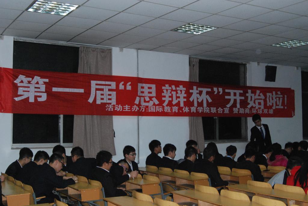 11月10日晚第一届“思辨杯”辩论赛在12201教室隆重拉开帷幕;本次活动由偷拍av 和国际教育学院共同举办。出席本次活动的嘉宾有偷拍av 院团委书记唐伟老师、国际教育学院罗老师以及各院学生会学习部部长。