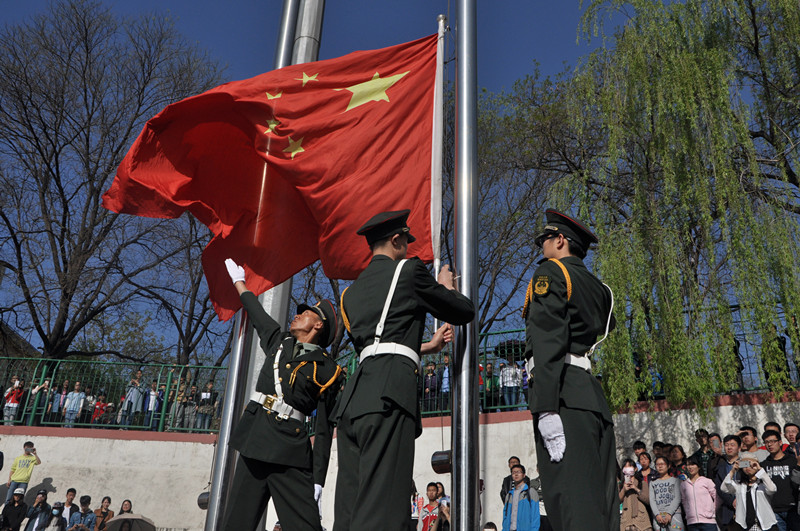 开幕式上,裁判组、国旗护卫队和16个学院的运动员方阵,踏着激昂的进行曲入场。别样的风采,别样的斗志,各学院方队精神饱满、英姿飒爽、活力四射并且独具特色,青年人对梦想和青春的憧憬和追求,在精致整齐的服装、嘹亮一致的口号和精彩纷呈的表演之中大放异彩。看台上,每位师生都以自己最诚挚的声音和呐喊为方阵行进中的运动健儿们加油助威。各方阵陆续走过主席台并在体育场站定。之后,庄严雄壮的国歌声奏响,全场肃立,国旗在铿锵的乐声中冉冉升起。