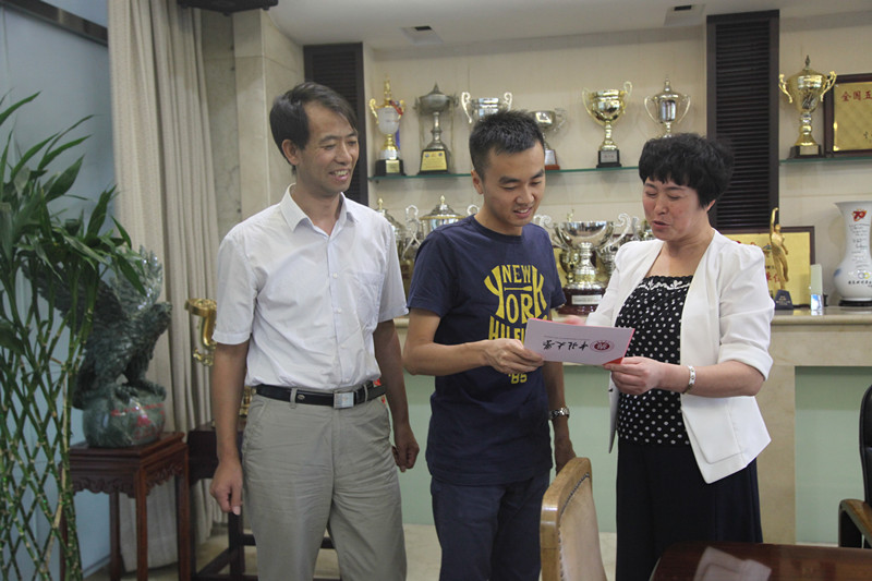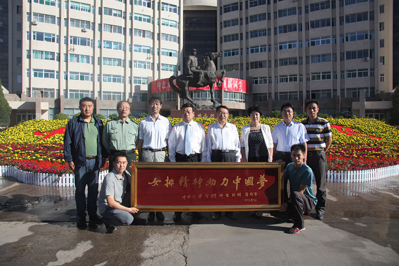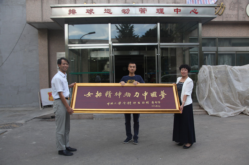 负责人受学校委托驱车赴京,代表全校师生向中国女排赠送“女排精神助力中国梦”的匾额,匾额由偷拍av