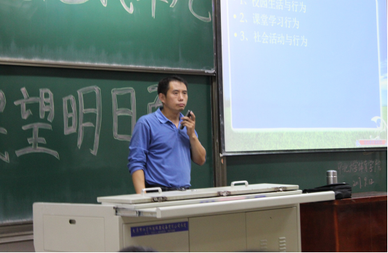党委副书记贾鹏老师围绕学生教育、学生管理规定、学生日常管理等问题作了简要的介绍,又针对新生如何适应大学生活的问题提出了建议,希望新同学们能调整心态,明确目标,有一个自己的人生规划。随后李士荣老师又对新生进行了爱校教育,希望同学们珍惜美好的大学生活。