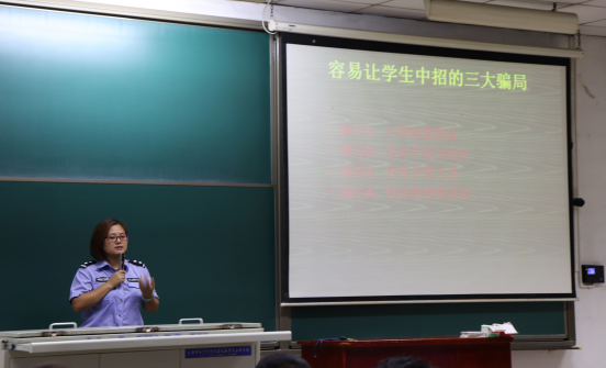 在11205给大家开展了一个《大学生安全教育》讲座。本次讲座由校保卫处郭薇薇老师主讲,讲座内容包括:宿舍安全,水电安全,防盗防骗,人身财产安全等方面。使同学们掌握了一定的安全知识,也提高了安全防范意识。