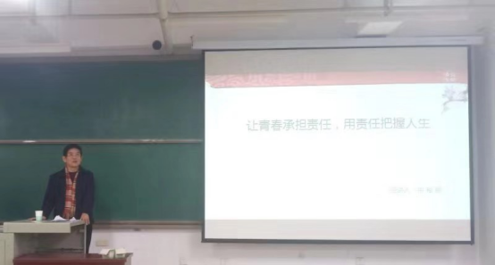 首先在牛教授的带领下,师生共同合唱了歌曲《光荣啊中国共青团》。报告中,教授用幽默生动的语言,结合自身经历分享,现场互动朗读等方式,把当代大学生拥有的责任和使命理念以及方法为同学们进行了解读,现场气氛热烈,不断响起阵阵掌声。