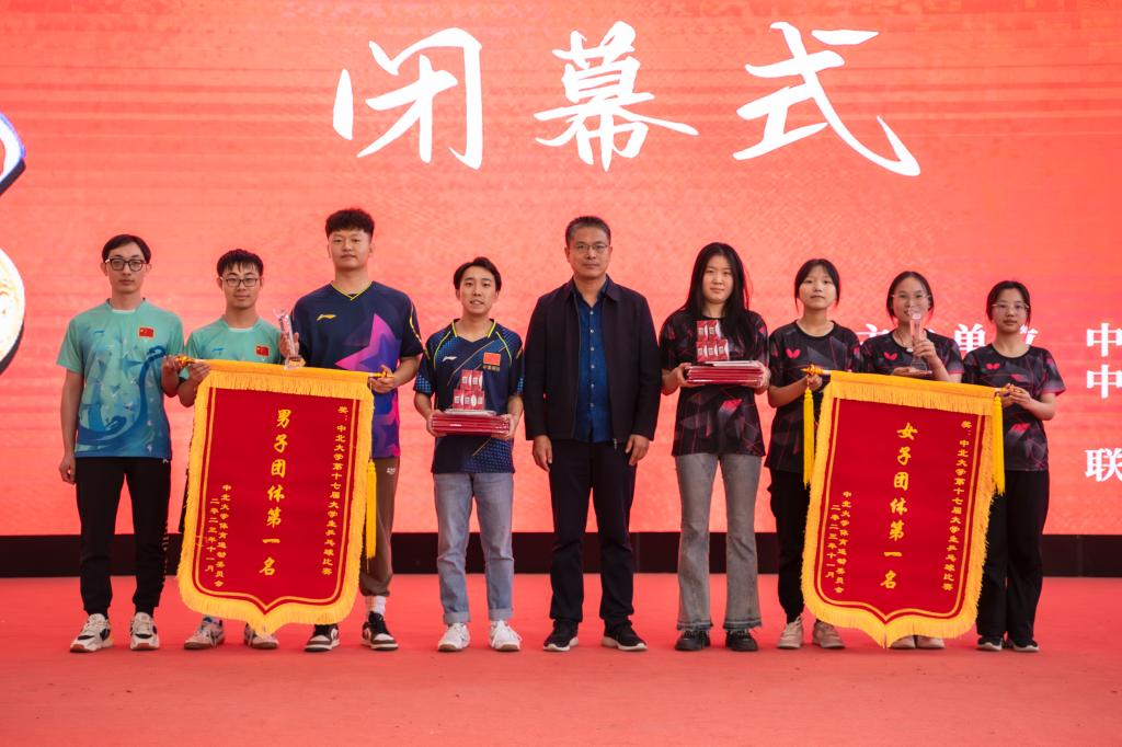 第十七届大学生乒乓球赛经过两天共72场次的激烈角逐,有十八个学院共计400余名学生参加。最终,研究生院、材料科学与工程学院、机械工程学院分别获得男子团体冠、亚、季军,化学与化工学院、经济与管理学院、环境与安全工程学院分别获得女子团体冠、亚、季军,能源与动力工程学院获得精神文明奖,信息与通信工程学院获得最佳组织奖。