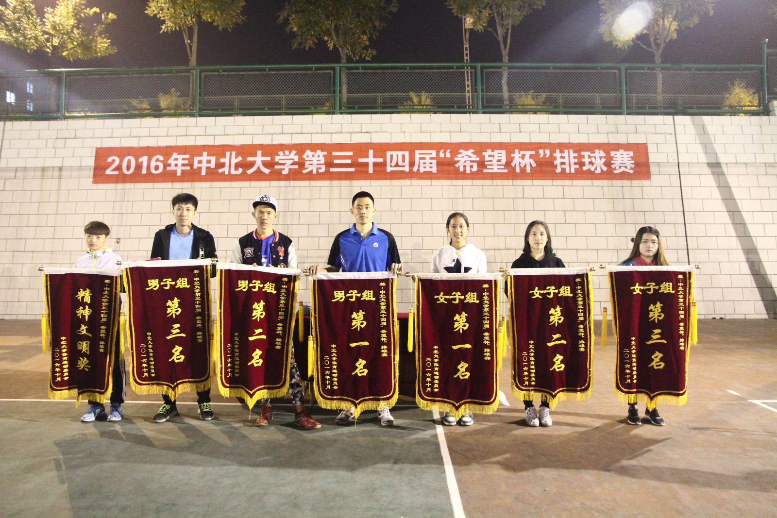 偷拍av 2016年第三十四届希望杯排球赛,于10月12日下午圆满落幕。本次比赛, 共有来自12个学院的男、女共24支队伍参加比赛,经过十几天共68场激烈角逐,女子组前三名分别由研究生院、信息与通信工程学院、仪器与电子学院夺得,男子组前三名分别是经济与管理学院、偷拍av 、研究生院。 在随后的颁奖典礼上,偷拍av 曹电康院长,王琳书记,吴剑副院长,公体部李江霞主任出席,并为取得成绩与荣誉的代表队颁发锦旗、奖品与证书。