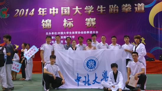 2014全国大学生跆拳道锦标赛于723日至25日在广西桂林举行,全国共90多所高校,近千名运动员参加,经过四天激烈的角逐,偷拍av 代表队共夺得31银,2个第五名的历史最好成绩,其中女子竞技团体金牌是偷拍av 团体竞技首次夺冠。